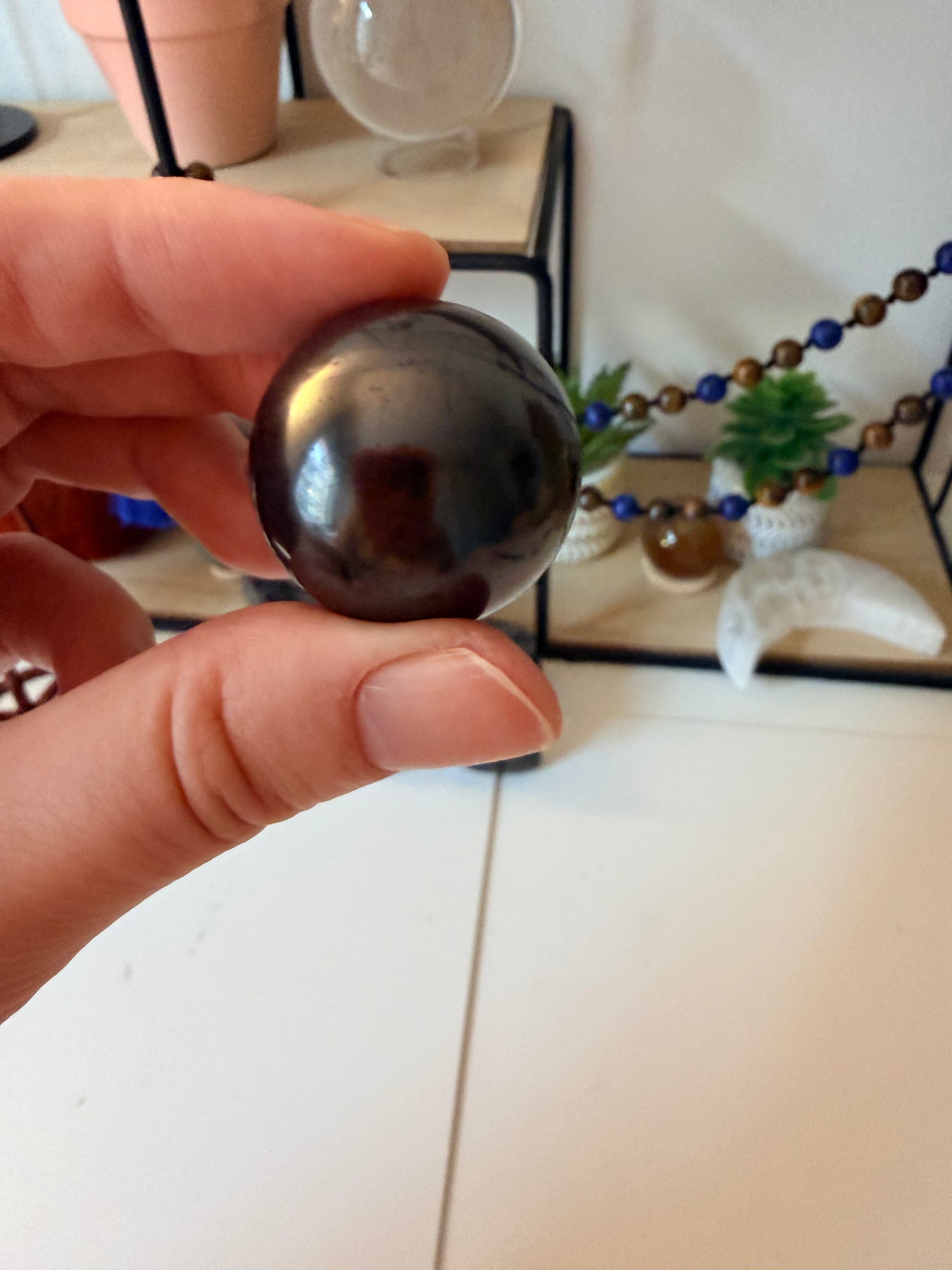 ✨ Cada esfera es única, con vetas y matices propios de la shungit natural.